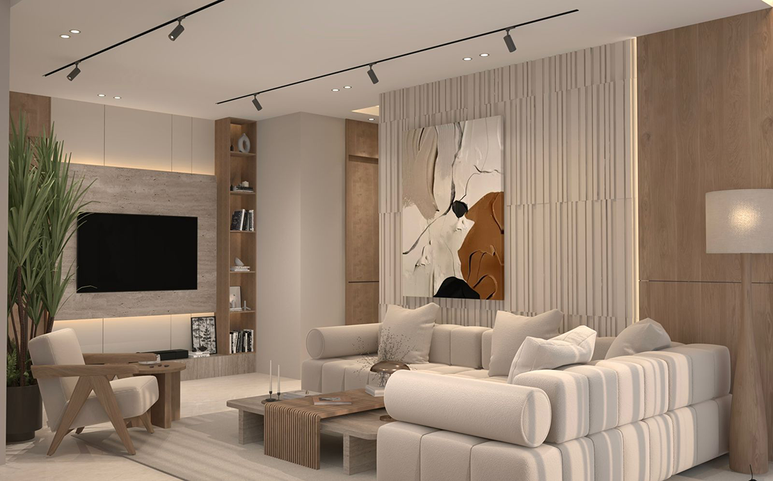 The furniture layout was planned with clean, smooth lines, selecting light and elegant pieces that give a sense of spaciousness without overcrowding the area. Hidden and linear lighting was used to enhance the depth of the design and highlight the beauty of the natural materials.